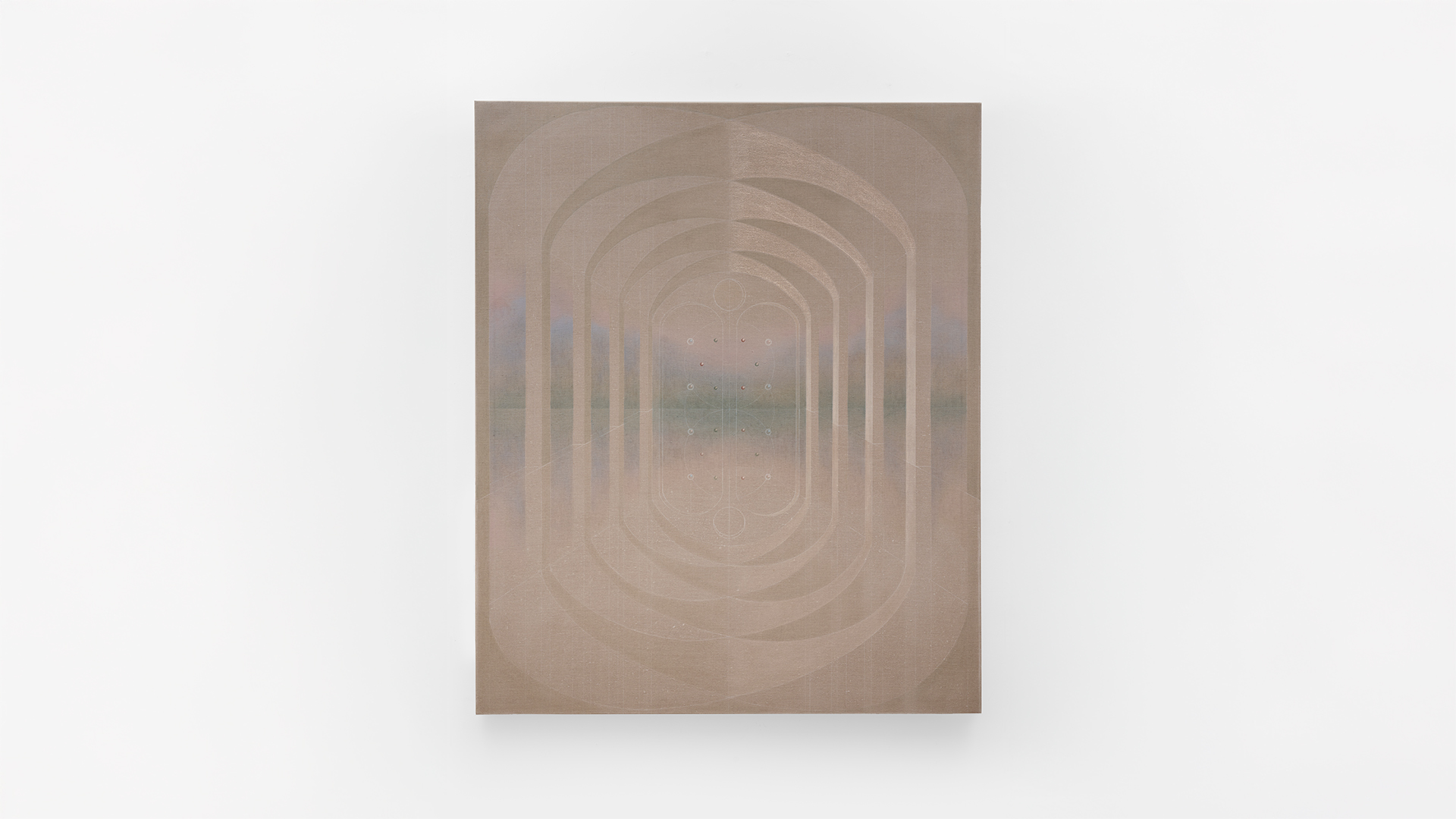piety, 2025 Oil, aerosol paint, and pastel on linen 44 x 40 INCHES