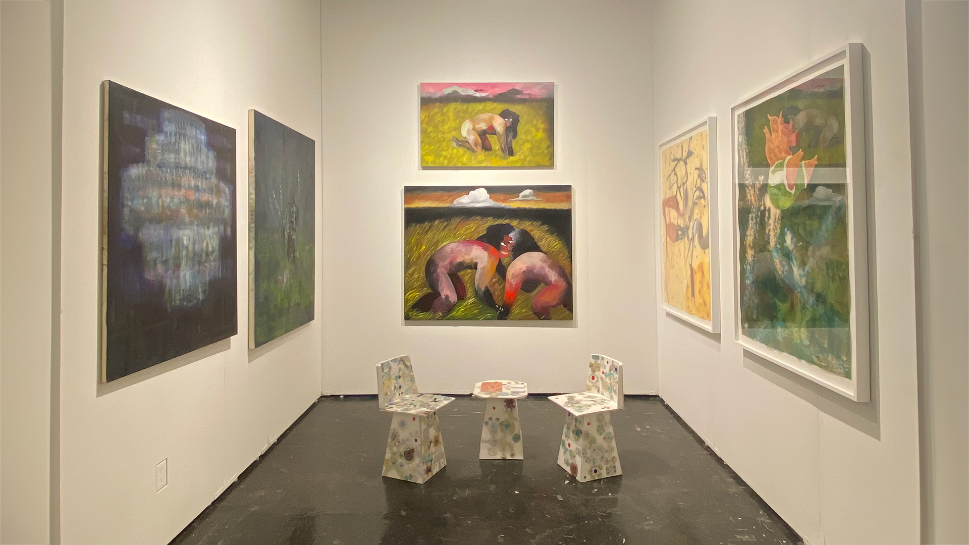 Oil pastel, oil stick, graphite, fabric dye, salt, & bleach on paper