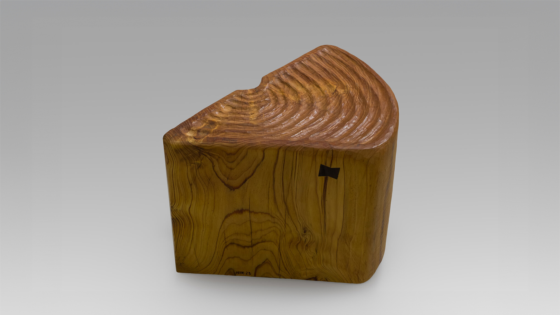 Shell Stool No. 11, 2023 Carved redwood 18 x 18 x 17 inches
